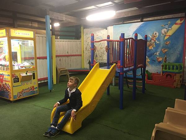 除此之外餐廳內附有兒童遊戲區,除了溜滑梯外還有台灣現在很夯的夾娃娃機,